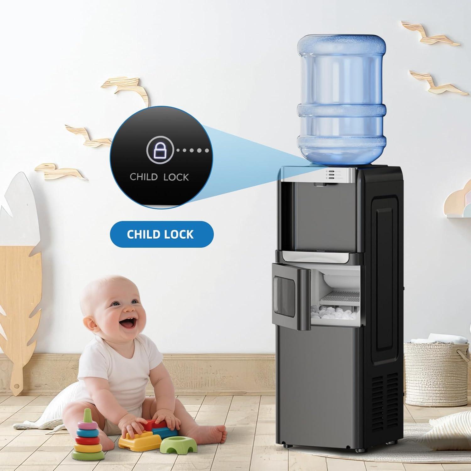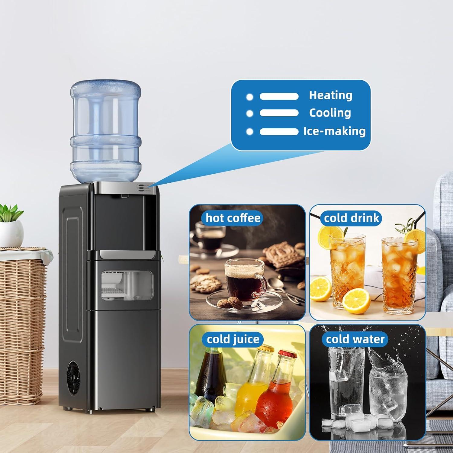Antarctic Star 3-in-1 Hot and Cold Water Cooler Dispenser with Built-in Ice Maker, for 3 to 5 Gallon Bottle Water Dispenser,with Child Safety Lock,Black(Black)