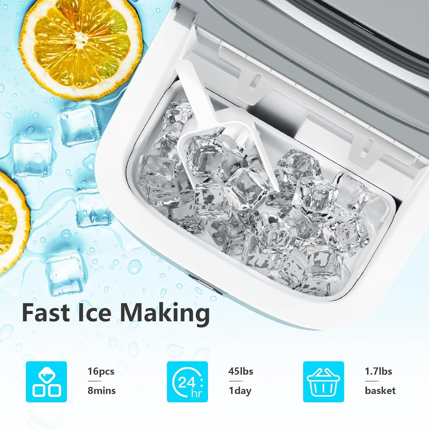 Antarctic Star Countertop Ice Maker Machine,45Lbs Square Ice Cubes in 24 Hrs,16 Ice Cubes Ready in 8 Mins with Self-claning,24H Timer Setting, Ice Scoop and Basket for Home Kitchen Office Bar, Grey(GERY)