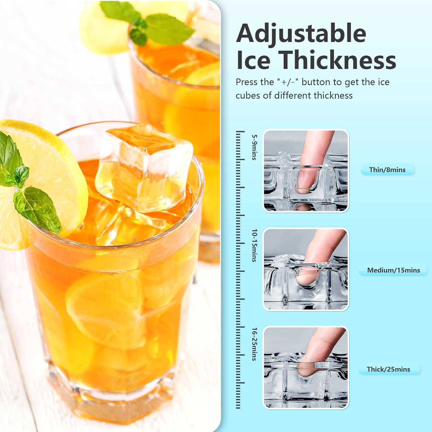 Adjustable Ice Size: Tailor your ice to your preferences with our adjustable ice size setting. Whether you need small cubes for drinks or larger ones for cooling, this ice maker has you covered.