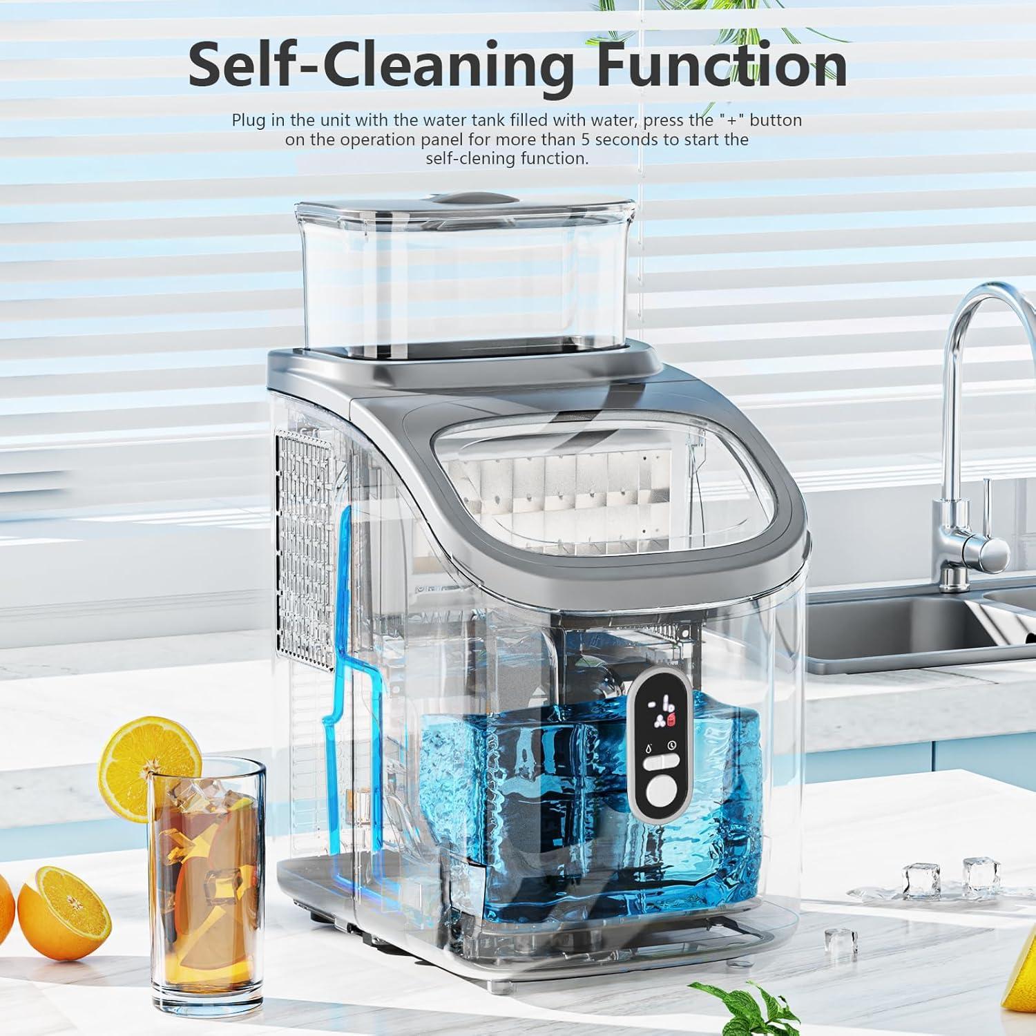 Antarctic Star Nugget Ice Maker Countertop, Chewable Pellet Ice Machine with Self Cleaning Function, Pebble Portable Ice Maker with Ice Scoop for Home Kitchen Office (Grey)(Black)