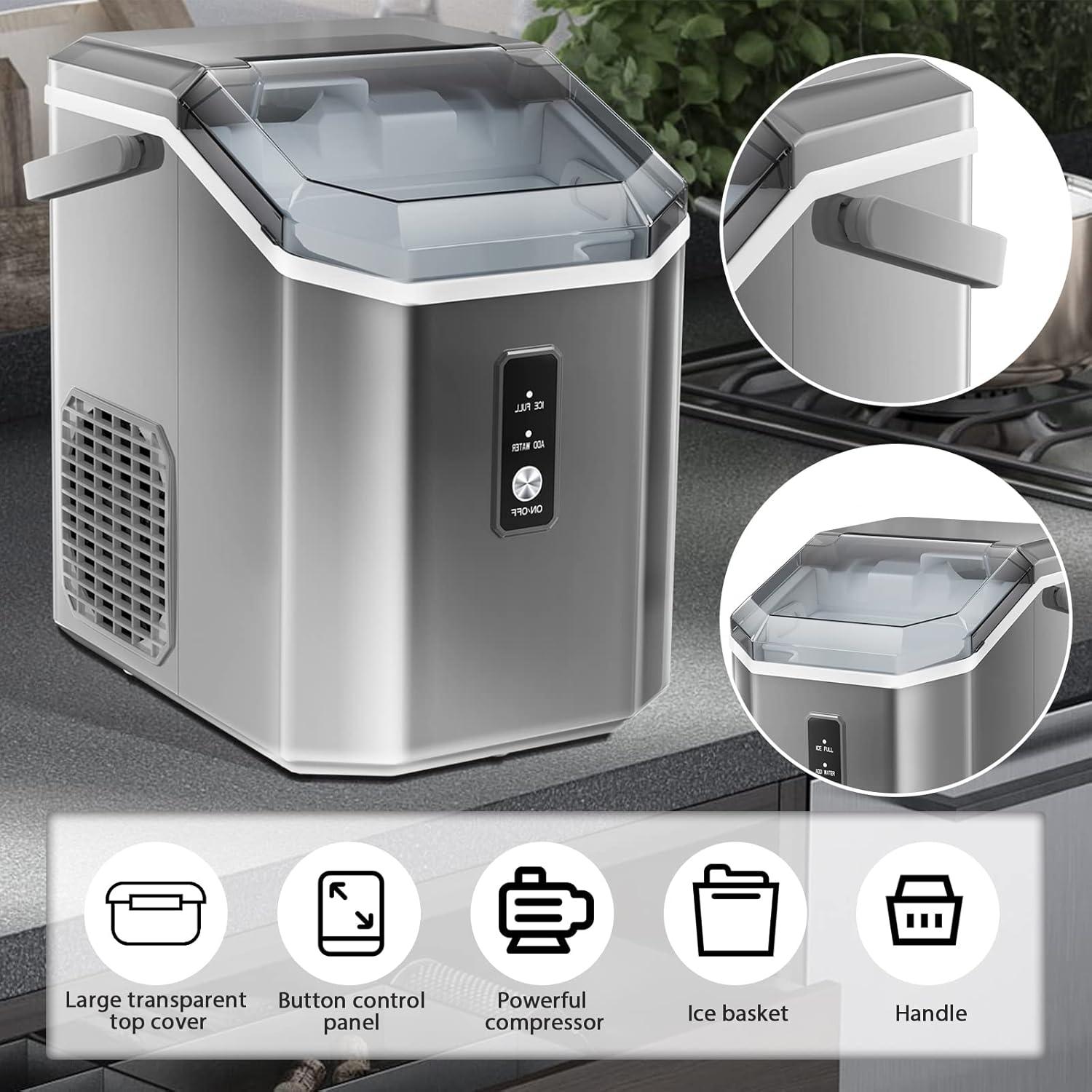 If you like to chew the soft, crunchy, granular ice produced by Antarctic Star nugget ice maker in your life, this machine will be your good bet. Granular ice is scraped off by a spiral blade and cut into small particles in the ice making process. Granulated ice is softer and crunchy than traditional ice cubes, giving you the ultimate taste satisfaction. Antarctic Star nugget ice maker Antarctic Star Nugget Ice Maker makes ice quickly and can produce up to 34lbs of ice in 24 hours, giving you all you need. This countertop ice maker is small in size and easy to carry, making it a good helper in your daily life. With self-cleaning function, let you no cleaning worries.