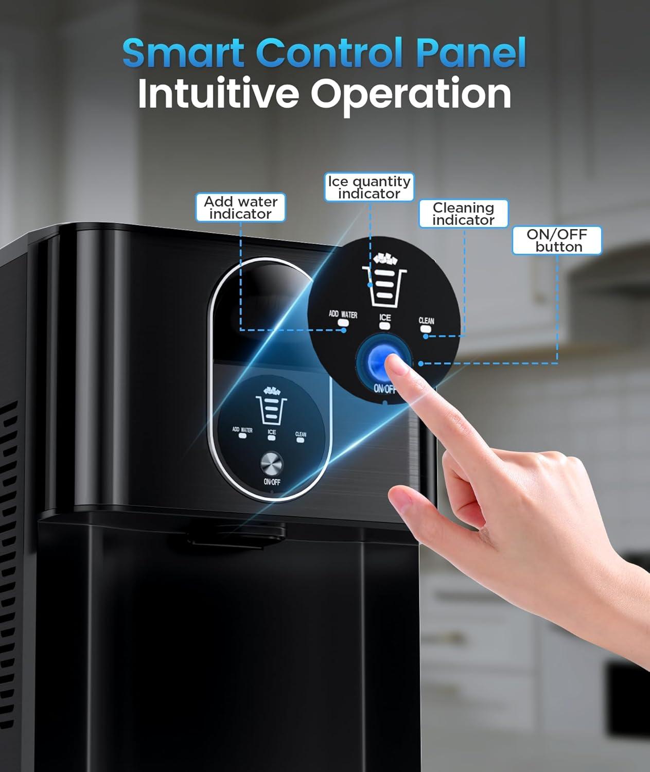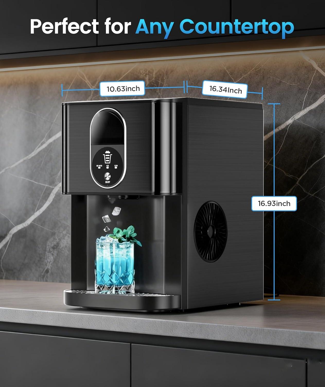 【Compact Space-Saving Design】 Sleek size fits perfectly on kitchen countertops, basement bars, RVs, or office break rooms—no bulky installation required. Get restaurant-quality chewable ice without wasting precious counter space.