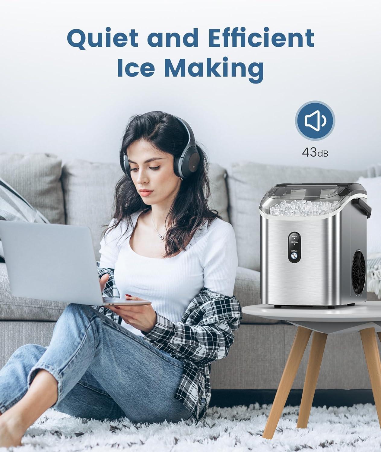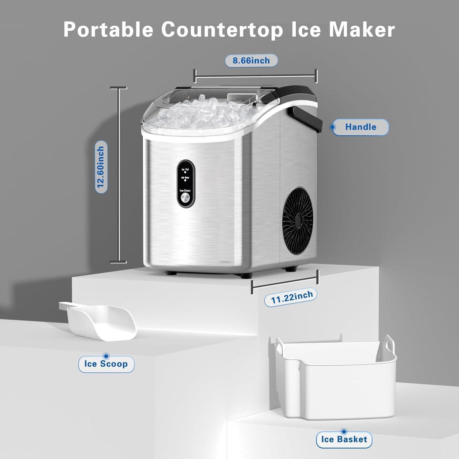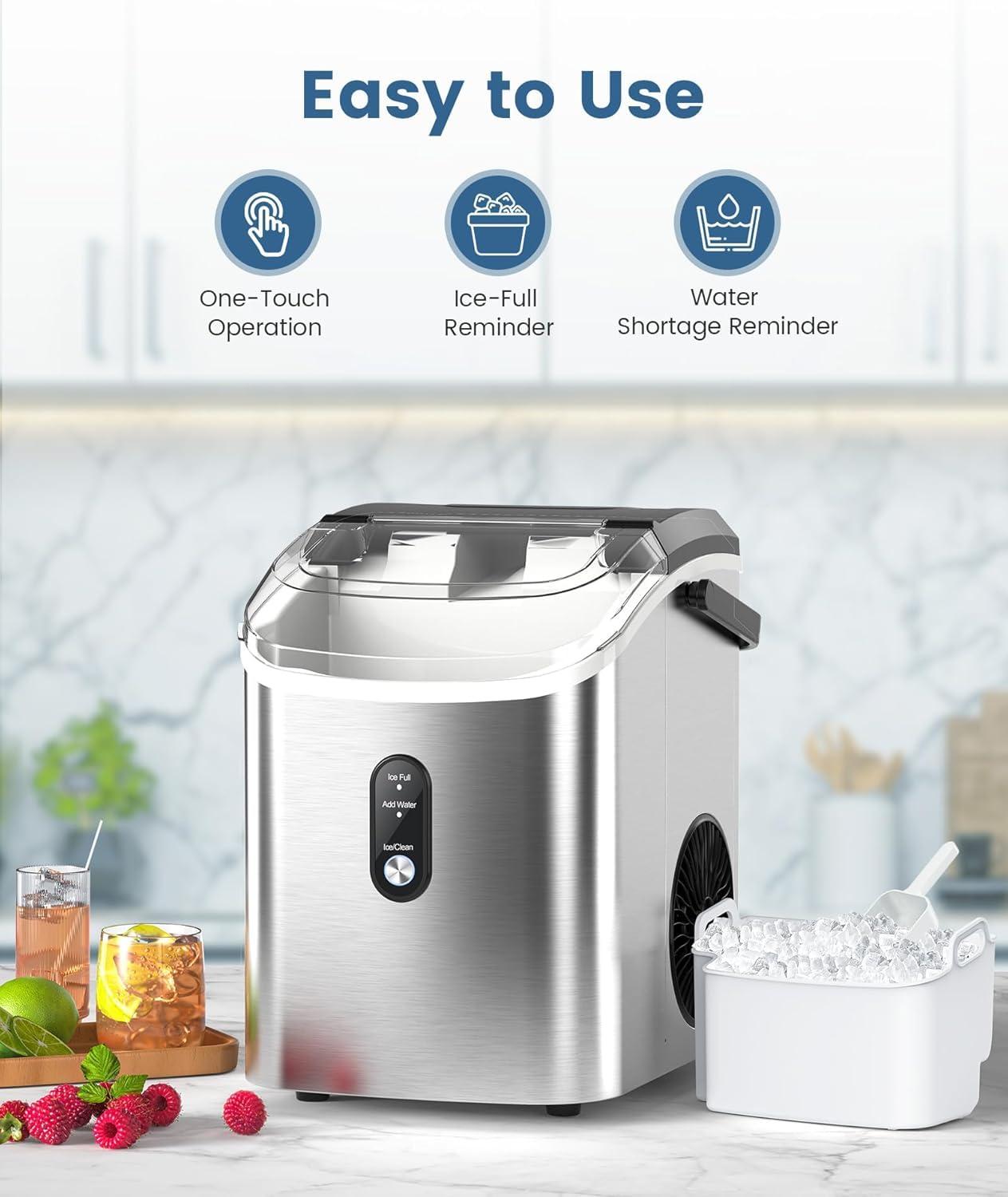 Antarctic Star Nugget Ice Maker Countertop,34Lbs/24H, One-Click Operation, Self-Cleaning, Ice Scoop&Ice Basket, Stainless Steel Pebble Ice Machine for Kitchen/Office/Bar (Steel Black)(Stainless Steel)