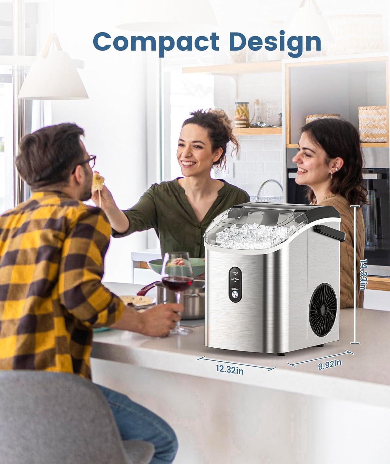 imageAntarctic Star Nugget Ice Maker Countertop34Lbs24H OneClick Operation SelfCleaning Ice ScoopampIce Basket Stainless Steel Pebble Ice Machine for KitchenOfficeBar Steel BlackSteel Black