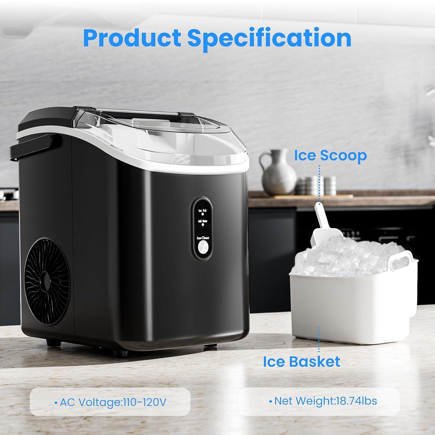 Antarctic Star Nugget Ice Makers Countertop with Auto-Cleaning, 35lbs/Day, Portable Sonic Ice Machine with Handle, Basket and Scoop for Home/Kitchen/Office/Camping(Stainless Steel Silver)(Black)