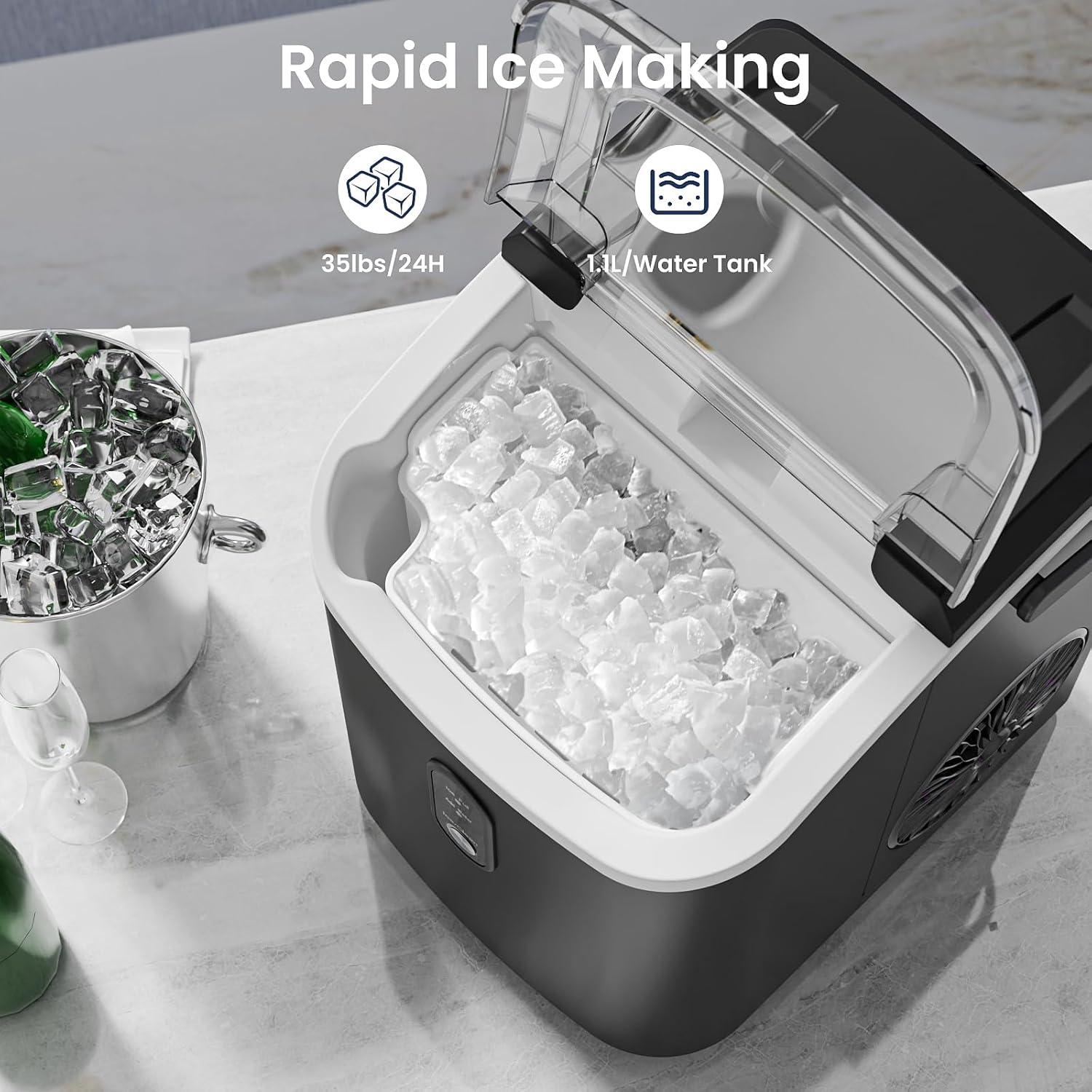 8-Minute Rapid Ice: Our nugget ice maker produces the first crunchy nugget cubes in around 8 min and up to 35 lb per day—let the machine skip store runs and keep your parties, campsites or offices stocked around the clock.