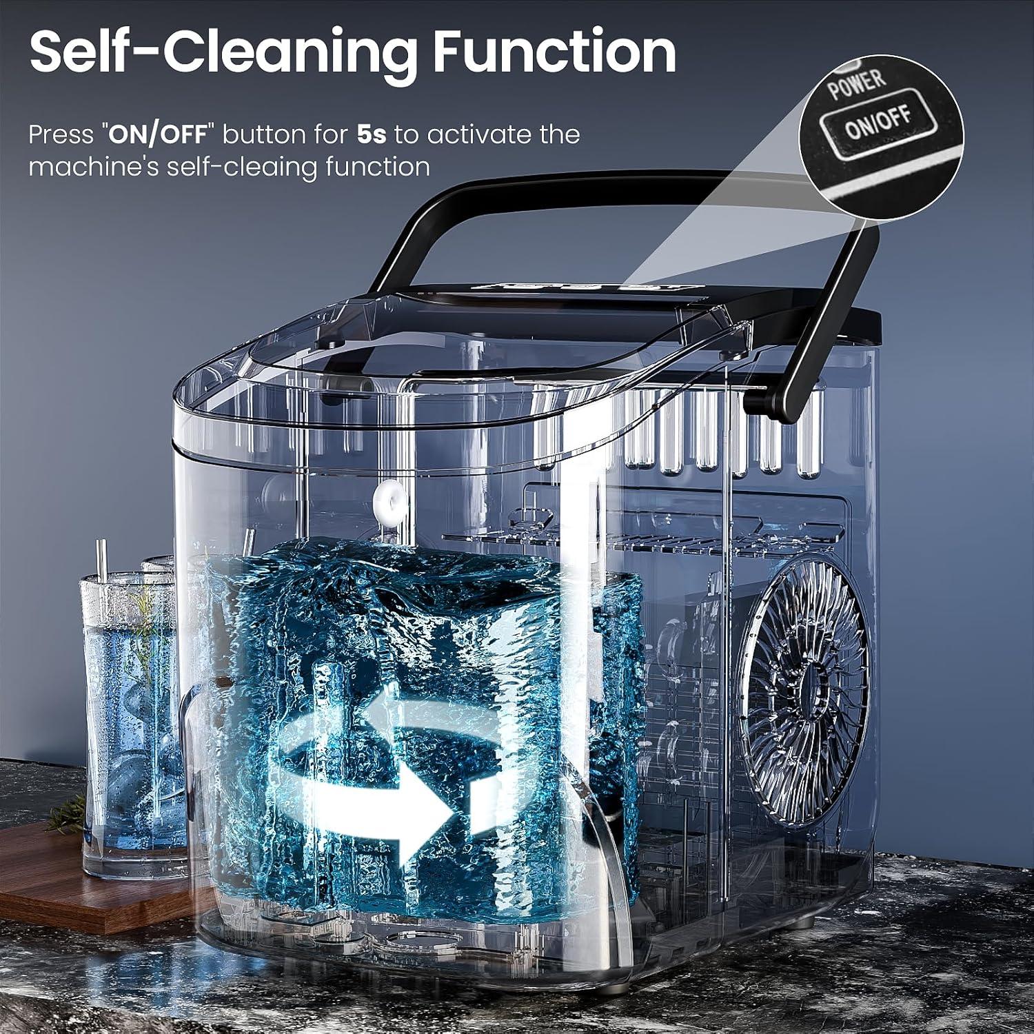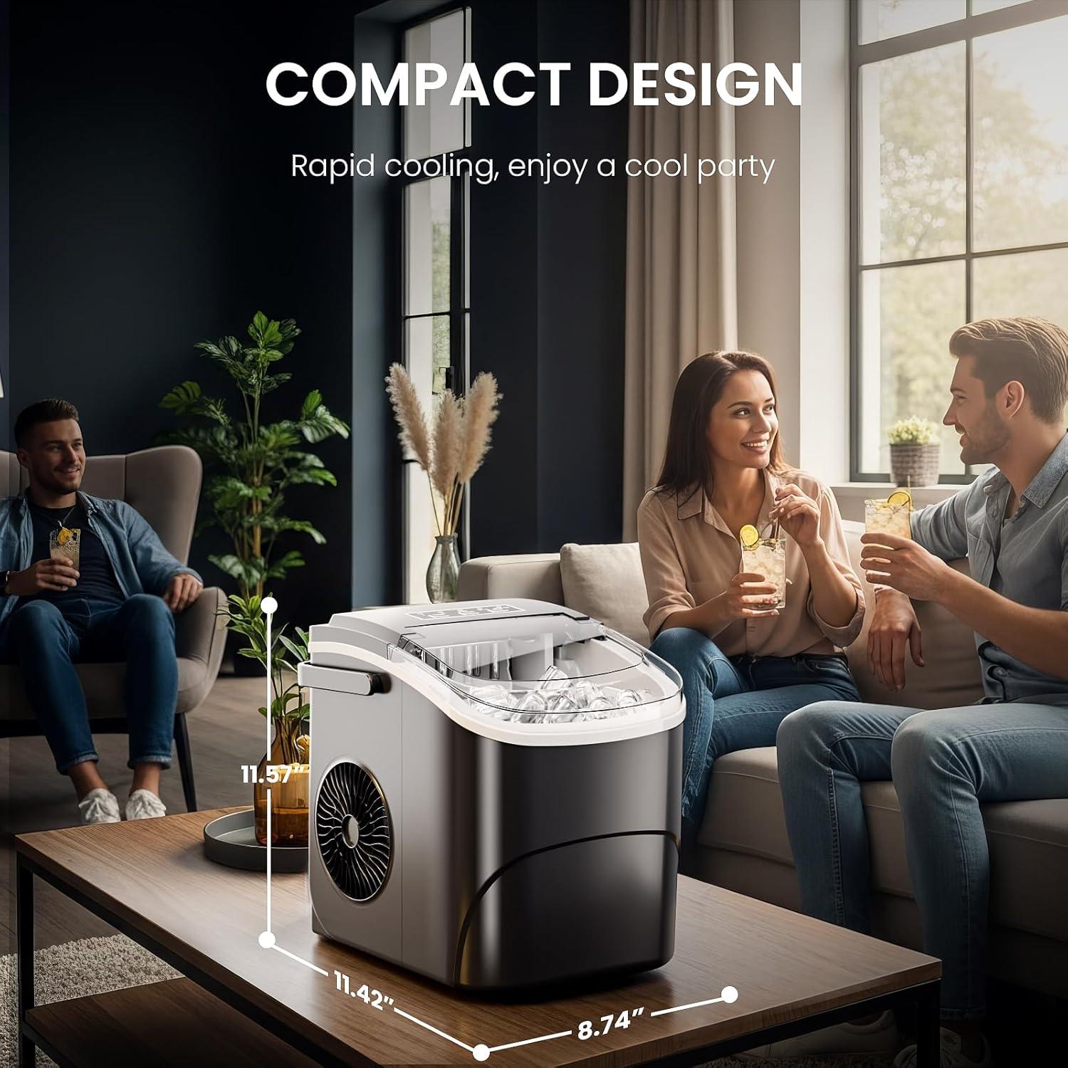 Effortless Pro-Grade Ice Production:Generate 9 crystal-clear ice cubes in just 6 minutes (26.5lbs/day) with commercial-grade cooling tech. Perfect for hosting gatherings, bar setups, or daily hydration—no plumbing required