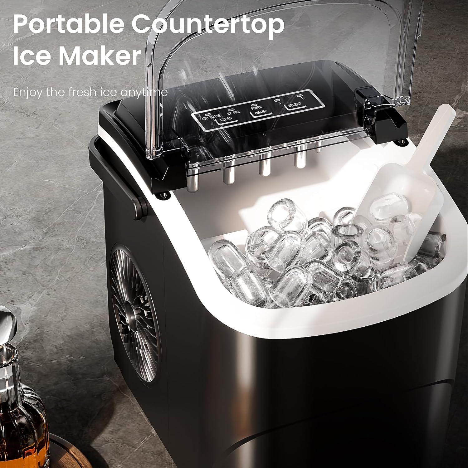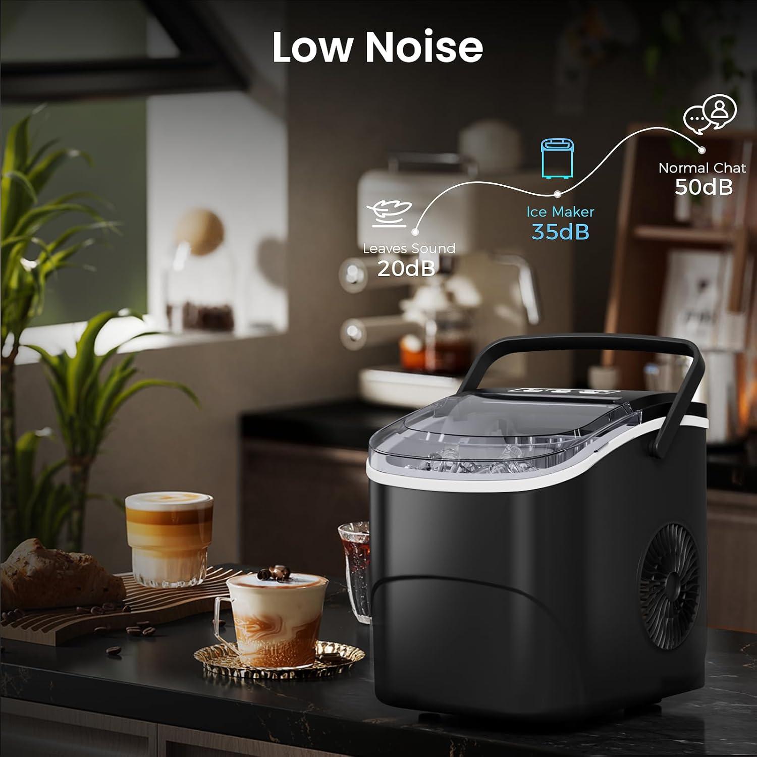 Antarctic Star Pro-Grade Countertop Ice Maker, 9 Cubes in 6 Mins, 26lbs/Day, Self-Cleaning, 2 Sizes, Ultra-Quiet for Home Bar, Kitchen, Office & Entertaining(BLACK)