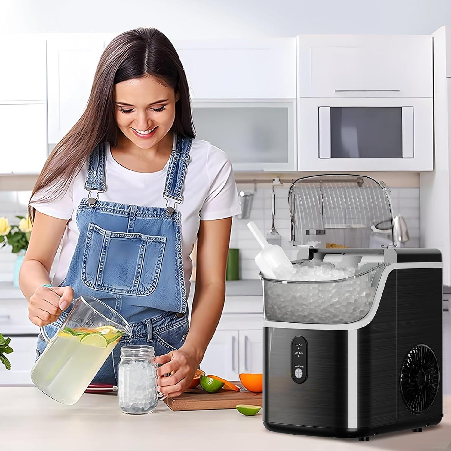 If you like to chew the soft, crunchy, granular ice produced by Antarctic Star nugget ice maker in your life, this machine will be your good bet. Granular ice is scraped off by a spiral blade and cut into small particles in the ice making process. Granulated ice is softer and crunchy than traditional ice cubes, giving you the ultimate taste satisfaction. Antarctic Star nugget ice maker Antarctic Star Nugget Ice Maker makes ice quickly and can produce up to 34lbs of ice in 24 hours, giving you all you need. This countertop ice maker is small in size and easy to carry, making it a good helper in your daily life. With self-cleaning function, let you no cleaning worries.